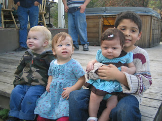 g out of this picture is the one in Jill’s belly. Jayden’s so darn big compared to these babies. I love the look on Ella’s face… she’s like I am done with all this picture taking, Mom! The little boy on the left is my cousin Jeremy’s little boy Ethan, and then there’s Gweneviere who is my cousin Autumn’s baby girl and then of course my cuties Jayden and Ella. Jayden will be the one looking after all them later on in life.