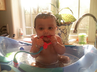 About 1 minute after hanging up the phone a cop knocked at the door and Ella and I went to greet him. He smiled and rubbed Ella’s tummy (she was just in a diaper) and she was a mess from the cookie. Well, he said “Are you okay little one?” and she took one look at him and flipped her lid. She didn’t like him at all. So he smiled and said, glad all turned out okay. I was pleased with how quickly he responded – that’s a plus on living in such a small little town.